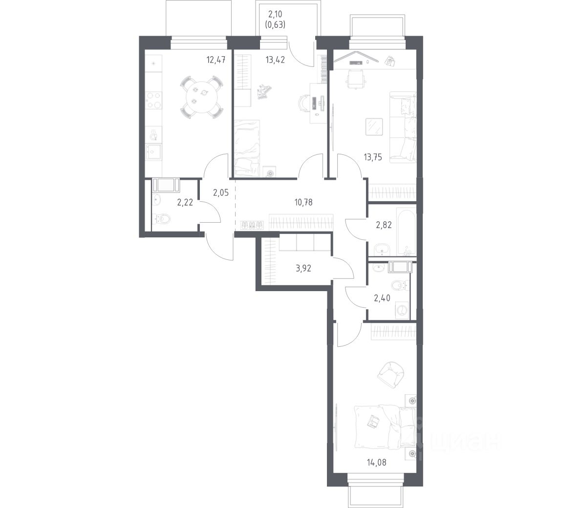 Строим кварталы для жизни с заботой о будущем. Предлагается 3-комнатная квартира комфорт-класса площадью 78,54 кв.м в корпусе 6.4 на 11-м этаже, в жилом комплексе "Томилино Парк".