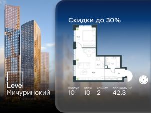 В жилом квартале, расположенном на границе с природным заказником "Долина реки Очаковки", продаётся 2-комнатная квартира площадью 42.30 кв.м с отделкой white box. Квартира расположена на 10 этаже 42-этажного корпуса 10 в жилом комплексе бизнес-класса Level Мичуринский (компания Level Group/Левел групп).