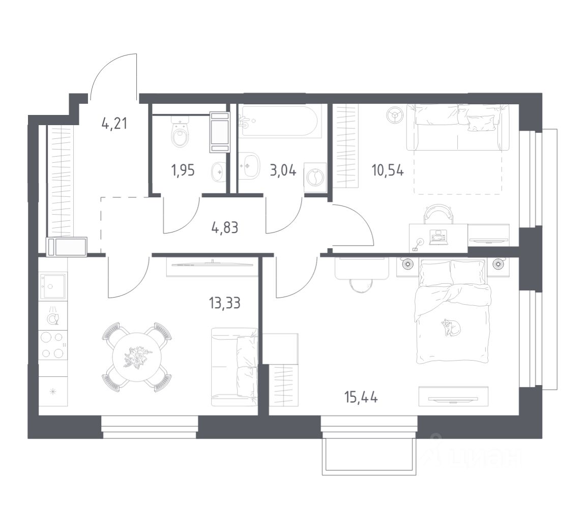 Строим кварталы для жизни с заботой о будущем. Предлагается 2-комнатная квартира комфорт-класса площадью 53,34 кв.м в корпусе 6.4 на 11-м этаже, в жилом комплексе "Томилино Парк".