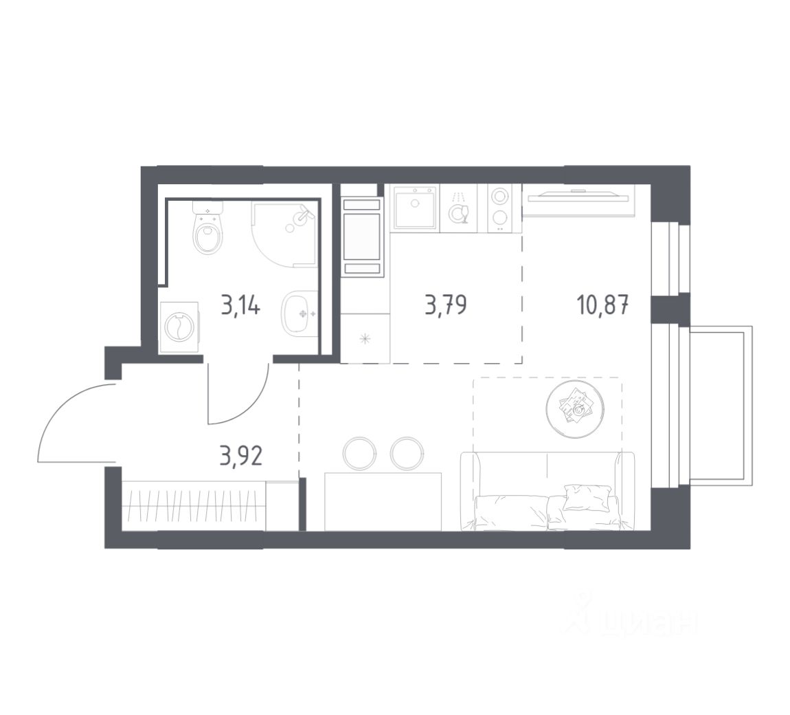 Строим кварталы для жизни с заботой о будущем. Предлагается студия комфорт-класса площадью 21,72 кв.м в корпусе 6.4 на 12-м этаже, в жилом комплексе "Томилино Парк".