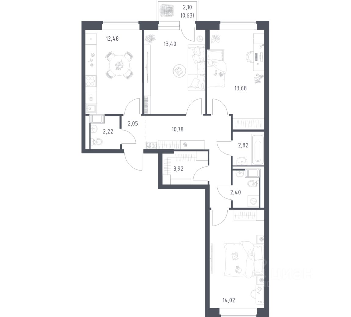 Квартиры комплекса — на выбор: могут быть как с отделкой, так и без. В случае с готовой отделкой в комнатах и прихожей уже будут обои, натяжные потолки и ламинат, а в санузлах — керамогранит на полу и керамическая плитка на стенах. Мы подведем все коммуникации и установим сантехнику.