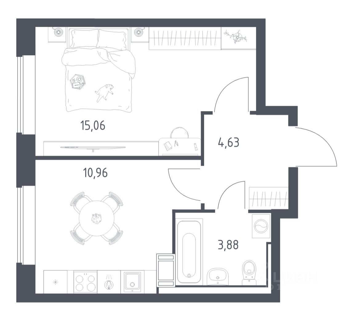 Строим кварталы для жизни с заботой о будущем. Предлагается 1-комнатная квартира комфорт-класса площадью 34,2 кв.м в корпусе 6.1 на 15-м этаже, в жилом комплексе "Томилино Парк".