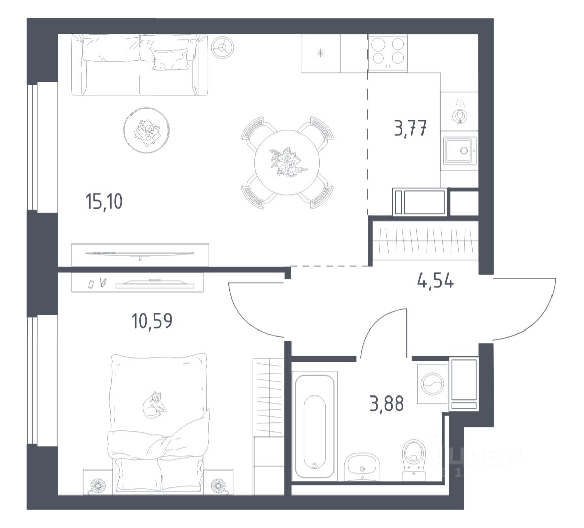 Строим кварталы для жизни с заботой о будущем. Предлагается 1-комнатная квартира комфорт-класса площадью 37,9 кв.м в корпусе 6.1 на 12-м этаже, в жилом комплексе "Томилино Парк".