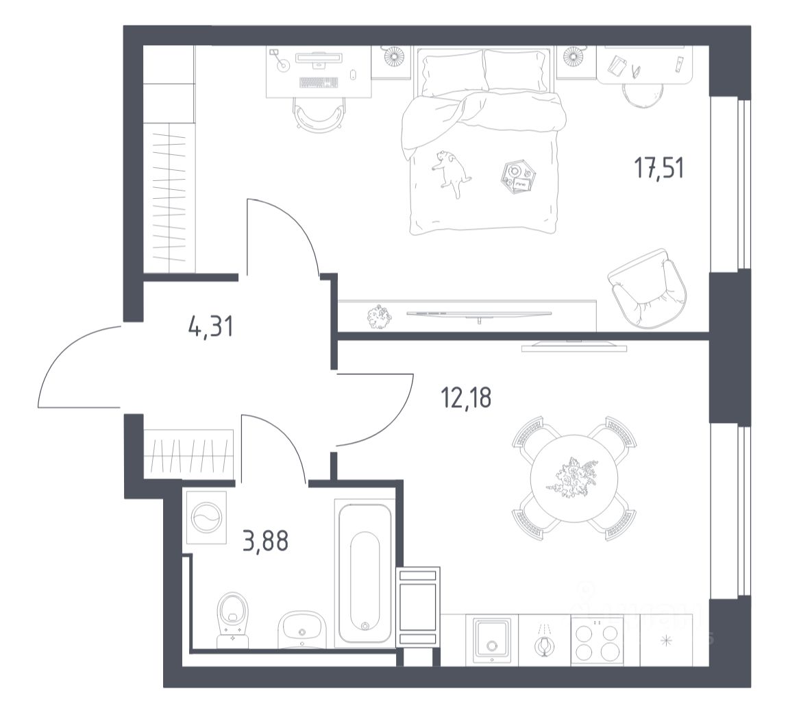 Квартиры комплекса — на выбор: могут быть как с отделкой, так и без. В случае с готовой отделкой в комнатах и прихожей уже будут обои, натяжные потолки и ламинат, а в санузлах — керамогранит на полу и керамическая плитка на стенах. Мы подведем все коммуникации и установим сантехнику.