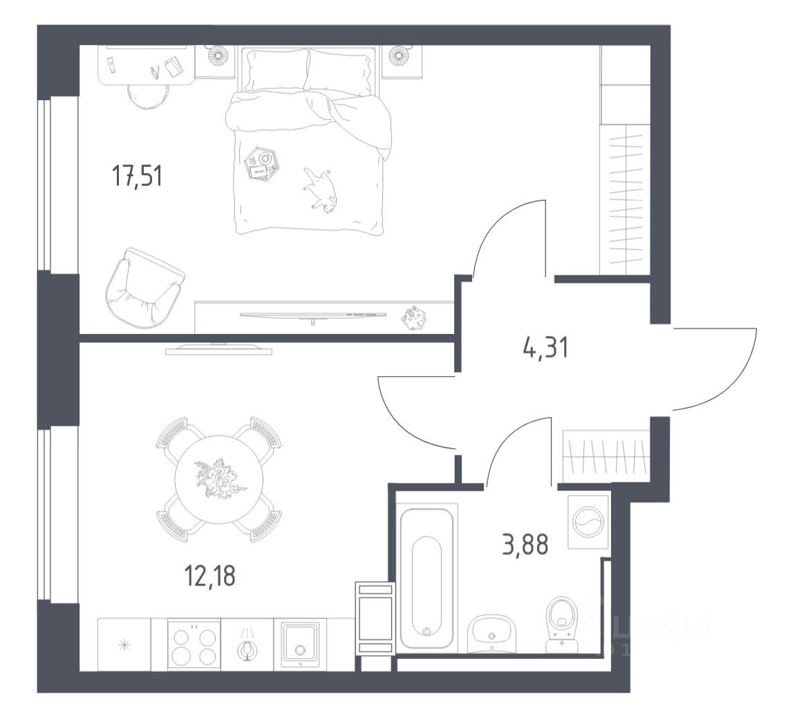 Квартиры комплекса — на выбор: могут быть как с отделкой, так и без. В случае с готовой отделкой в комнатах и прихожей уже будут обои, натяжные потолки и ламинат, а в санузлах — керамогранит на полу и керамическая плитка на стенах. Мы подведем все коммуникации и установим сантехнику.