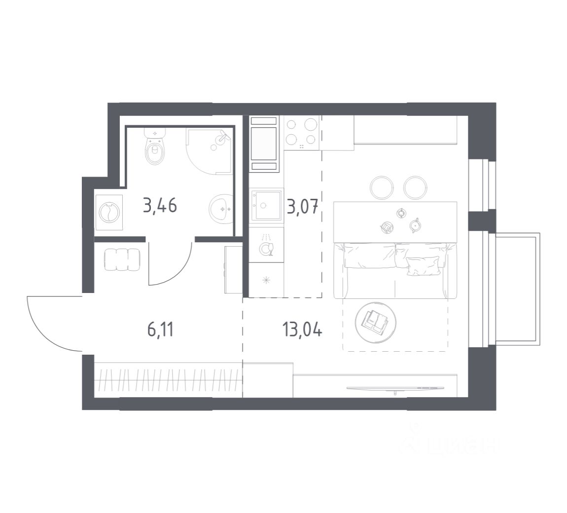 Строим кварталы для жизни с заботой о будущем. Предлагается студия комфорт-класса площадью 25,4 кв.м в корпусе 6.2 на 17-м этаже, в жилом комплексе "Томилино Парк".