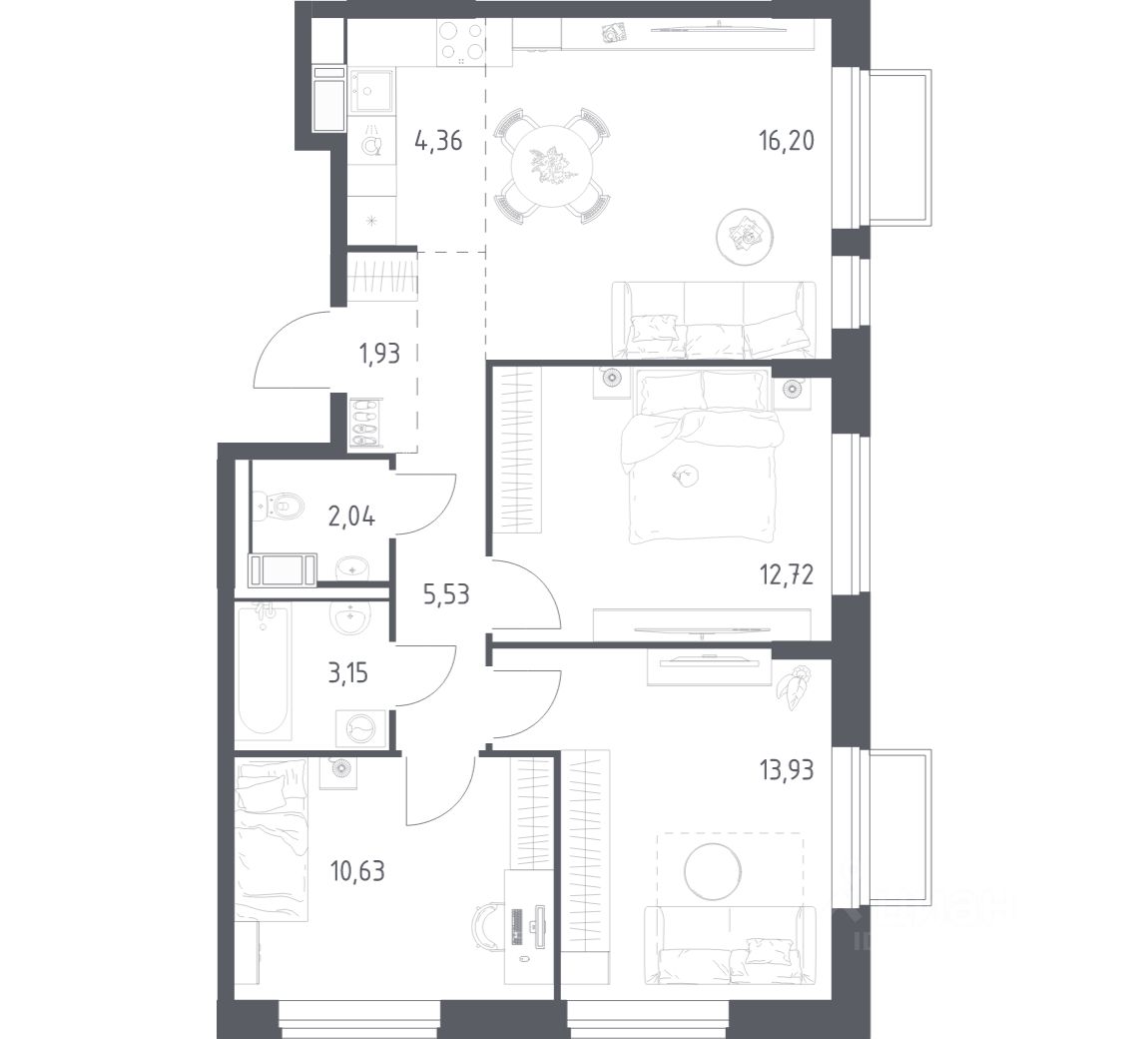 Квартиры комплекса — на выбор: могут быть как с отделкой, так и без. В случае с готовой отделкой в комнатах и прихожей уже будут обои, натяжные потолки и ламинат, а в санузлах — керамогранит на полу и керамическая плитка на стенах. Мы подведем все коммуникации и установим сантехнику.