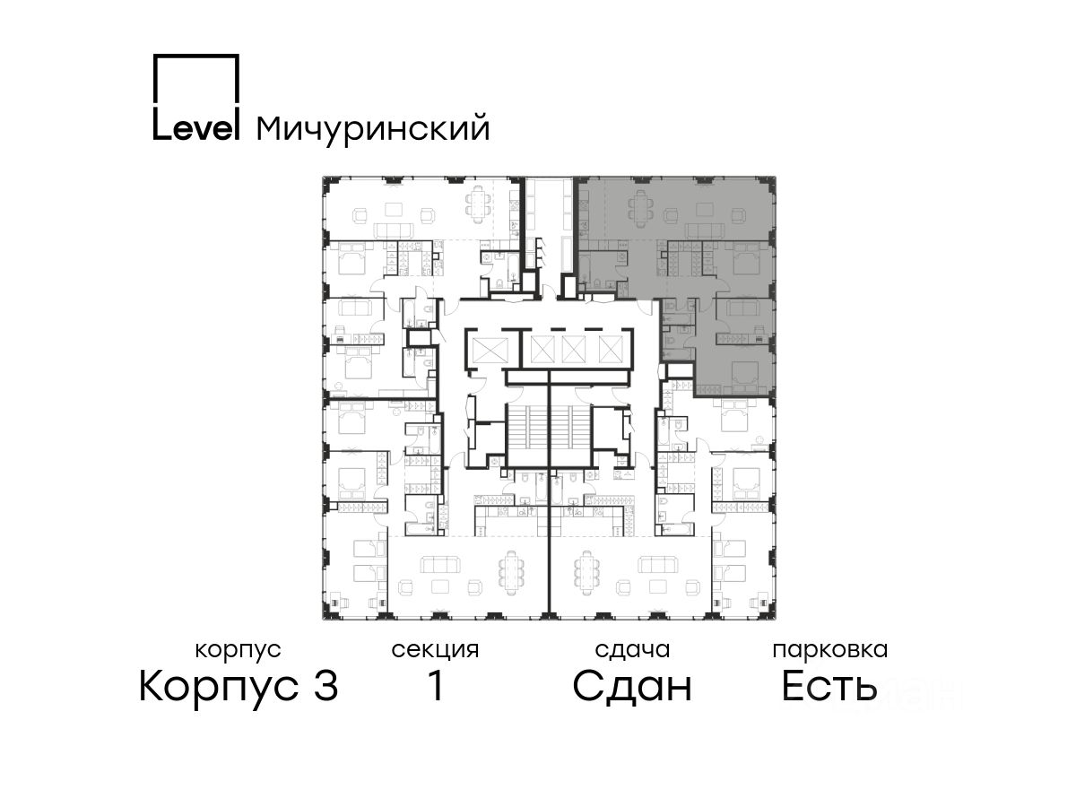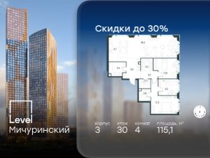 В жилом квартале, расположенном на границе с природным заказником "Долина реки Очаковки", продаётся 4-комнатная квартира площадью 115.10 кв.м без отделки. Квартира расположена на 30 этаже 30-этажного корпуса 3 в жилом комплексе бизнес-класса Level Мичуринский (компания Level Group/Левел групп).