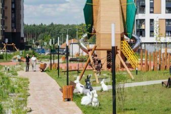 Во дворах-парках, закрытых от машин, комфортно и безопасно гулять. Здесь высажены уже взрослые деревья, которые создают прохладную тень в жаркий день.