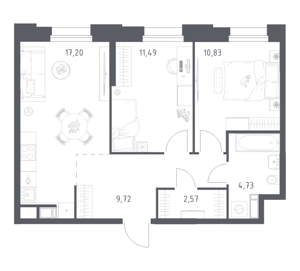 Строим кварталы для жизни с заботой о будущем. Предлагаются 2-комнатные апартаменты бизнес-класса площадью 56,54 кв.м в корпусе 2.3 на 4-м этаже, в жилом комплексе "Тропарево Парк".