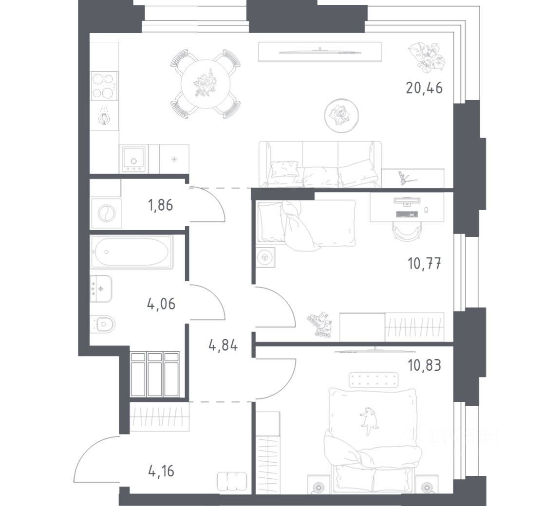 Строим кварталы для жизни с заботой о будущем. Предлагаются 2-комнатные апартаменты бизнес-класса площадью 56,98 кв.м в корпусе 2.3 на 16-м этаже, в жилом комплексе "Тропарево Парк".