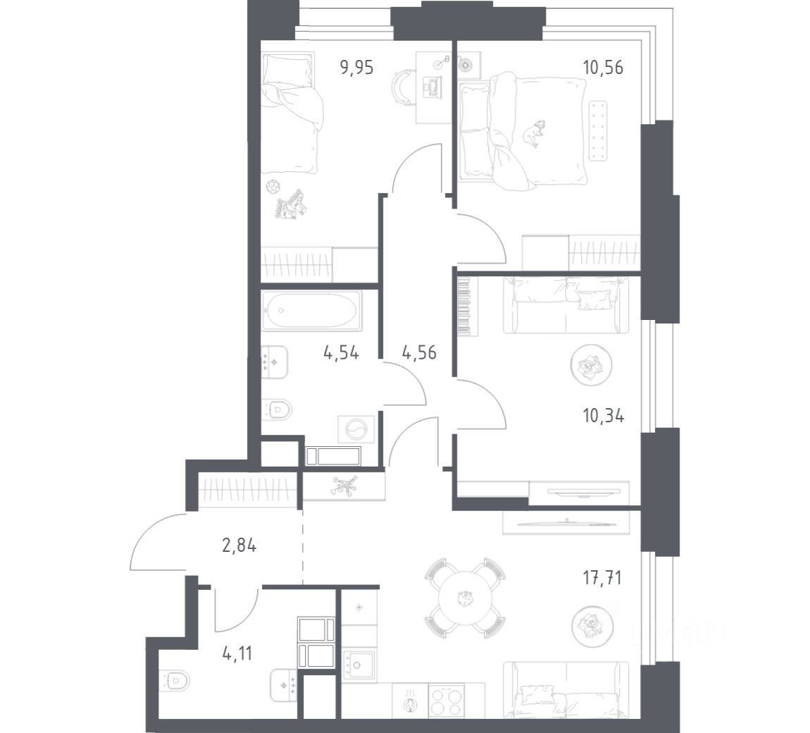 Строим кварталы для жизни с заботой о будущем. Предлагаются 3-комнатные апартаменты бизнес-класса площадью 64,61 кв.м в корпусе 2.3 на 6-м этаже, в жилом комплексе "Тропарево Парк".