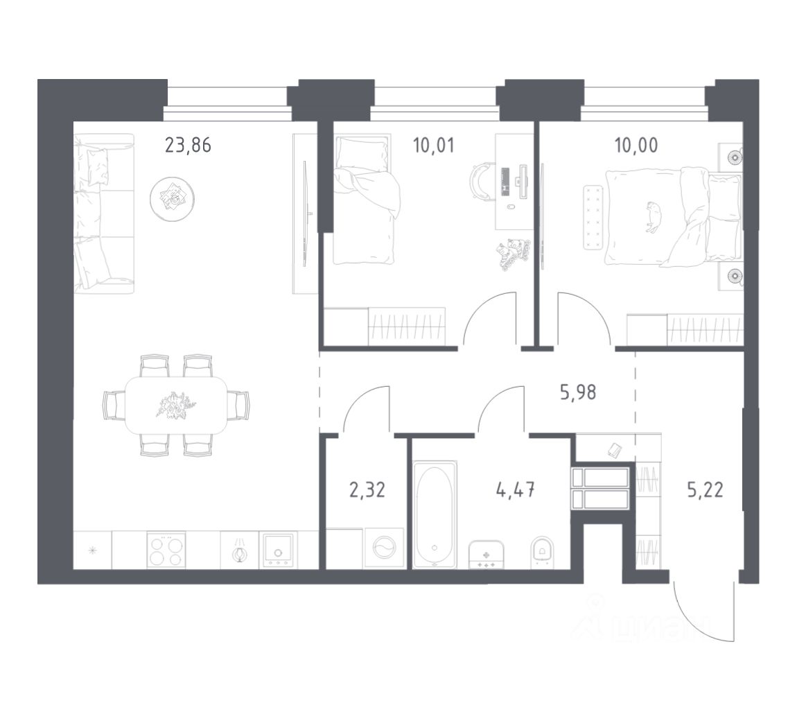 Строим кварталы для жизни с заботой о будущем. Предлагаются 2-комнатные апартаменты бизнес-класса площадью 61,86 кв.м в корпусе 2.3 на 11-м этаже, в жилом комплексе "Тропарево Парк".