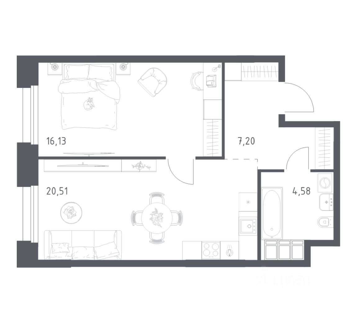 Строим кварталы для жизни с заботой о будущем. Предлагаются 1-комнатные апартаменты бизнес-класса площадью 48,42 кв.м в корпусе 2.3 на 17-м этаже, в жилом комплексе "Тропарево Парк".