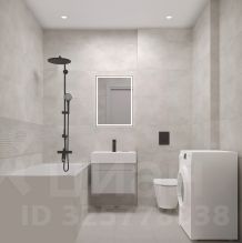 Стены в ванной и санузлах отделаны керамогранитом под мрамор, установлена вся нужная сантехника. Для стиральной машины уже предусмотрено место.