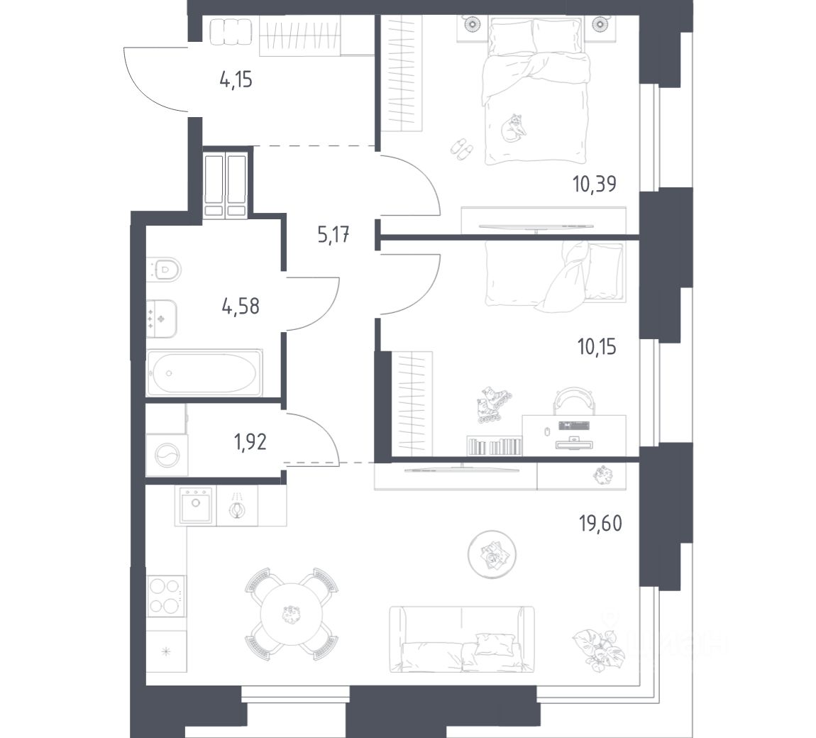 Строим кварталы для жизни с заботой о будущем. Предлагаются 2-комнатные апартаменты бизнес-класса площадью 55,96 кв.м в корпусе 2.2 на 3-м этаже, в жилом комплексе "Тропарево Парк".