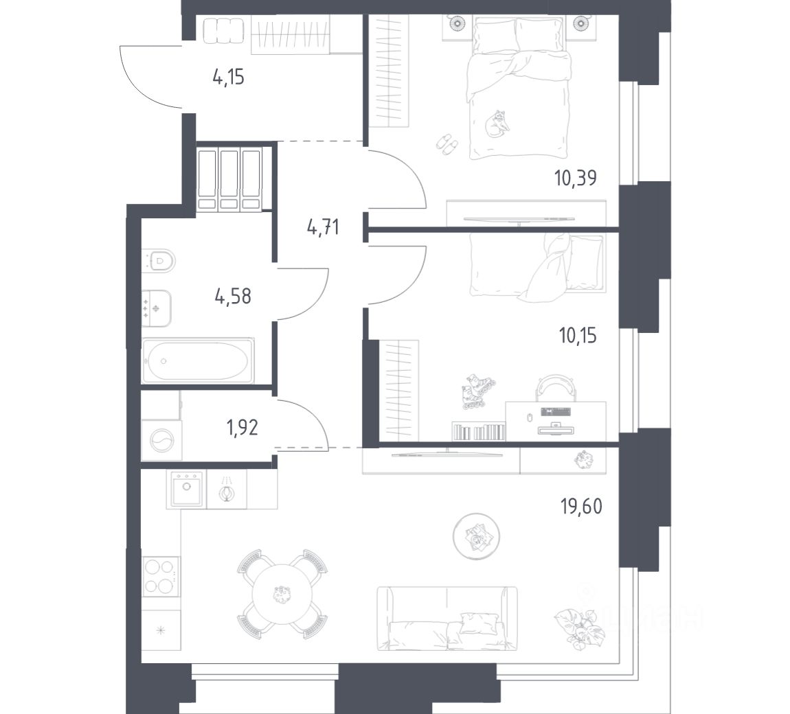 Строим кварталы для жизни с заботой о будущем. Предлагаются 2-комнатные апартаменты бизнес-класса площадью 55,5 кв.м в корпусе 2.2 на 16-м этаже, в жилом комплексе "Тропарево Парк".
