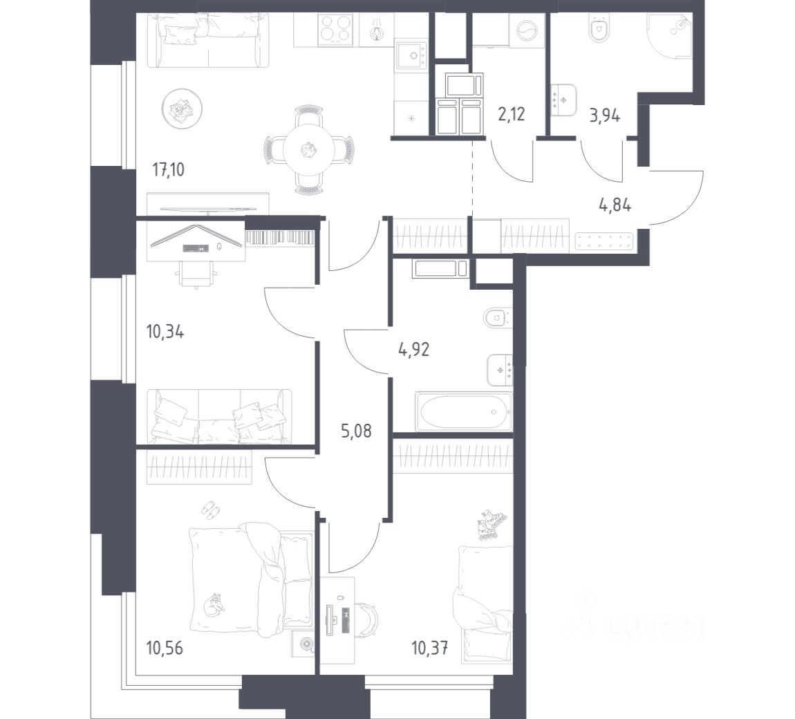 Строим кварталы для жизни с заботой о будущем. Предлагаются 3-комнатные апартаменты бизнес-класса площадью 69,27 кв.м в корпусе 2.2 на 20-м этаже, в жилом комплексе "Тропарево Парк".