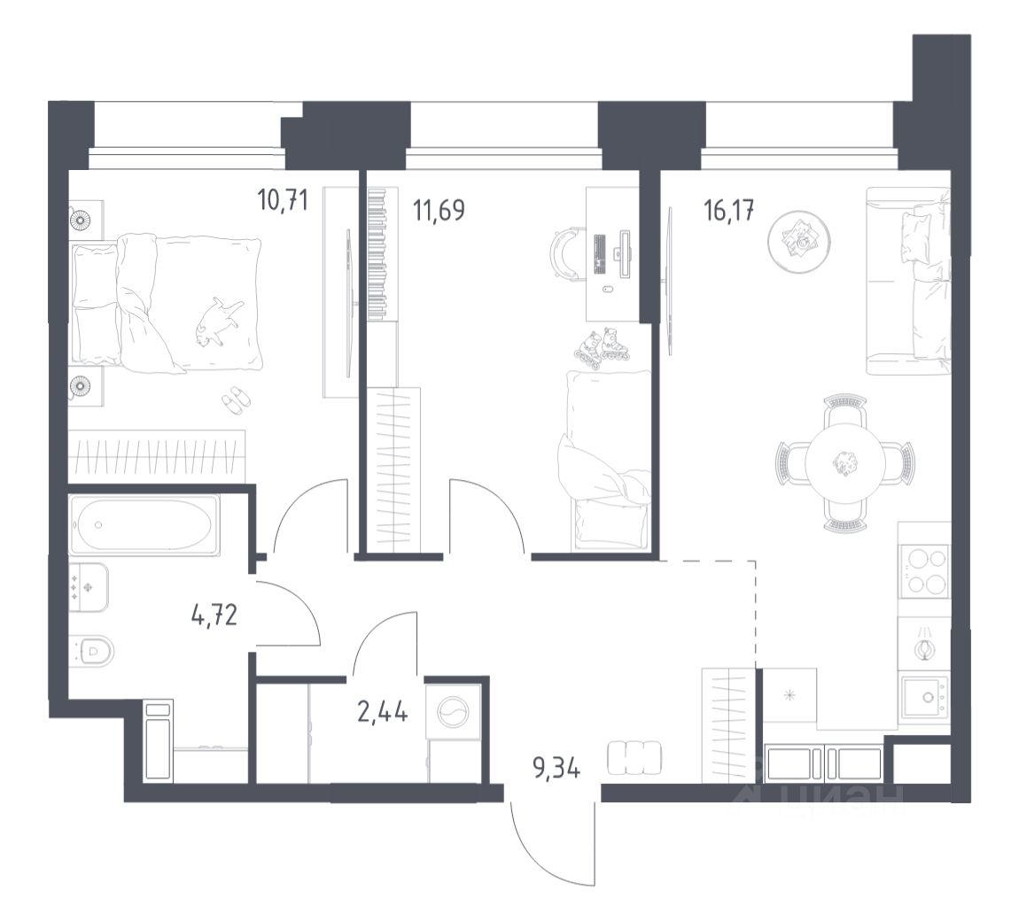 Строим кварталы для жизни с заботой о будущем. Предлагаются 2-комнатные апартаменты бизнес-класса площадью 55,07 кв.м в корпусе 2.2 на 21-м этаже, в жилом комплексе "Тропарево Парк".