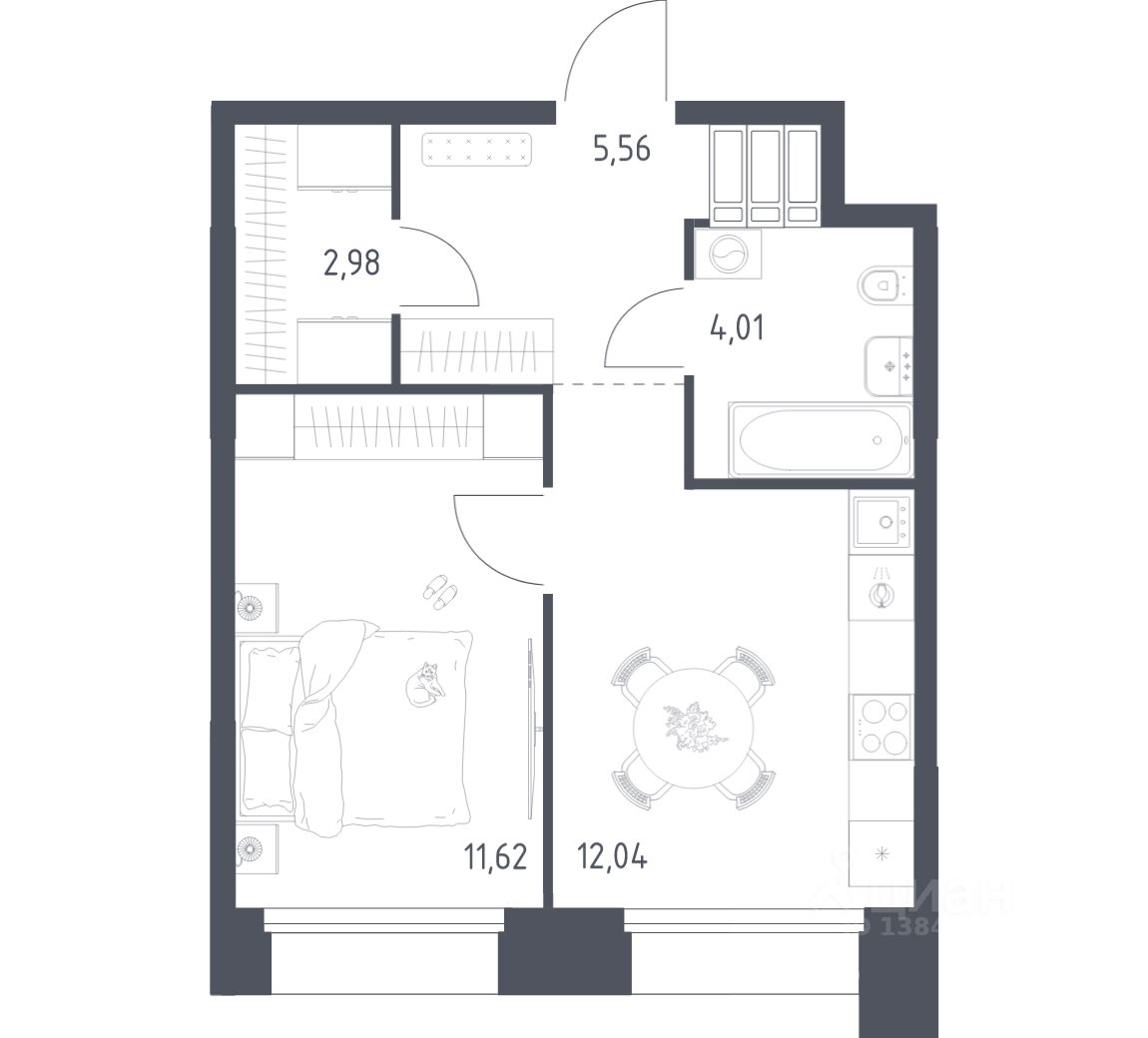 Строим кварталы для жизни с заботой о будущем. Предлагаются 1-комнатные апартаменты бизнес-класса площадью 36,21 кв.м в корпусе 2.2 на 23-м этаже, в жилом комплексе "Тропарево Парк".