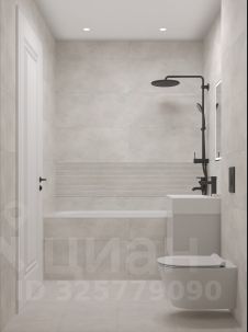 Стены в ванной и санузлах отделаны керамогранитом под мрамор, установлена вся нужная сантехника. Для стиральной машины уже предусмотрено место.