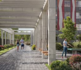 Предусмотрены современные детские площадки для ребят всех возрастов, воркаут-зона, площадка для выгула и тренировки собак. Любители спортивных игр оценят баскетбольную площадку и столы для настольного тенниса.