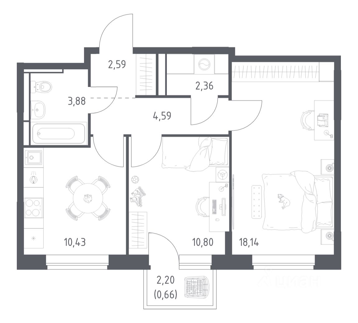 Строим кварталы для жизни с заботой о будущем. Предлагается 2-комнатная квартира комфорт-класса площадью 53,45 кв.м в корпусе 10.1 на 14-м этаже, в жилом комплексе "Прибрежный Парк".