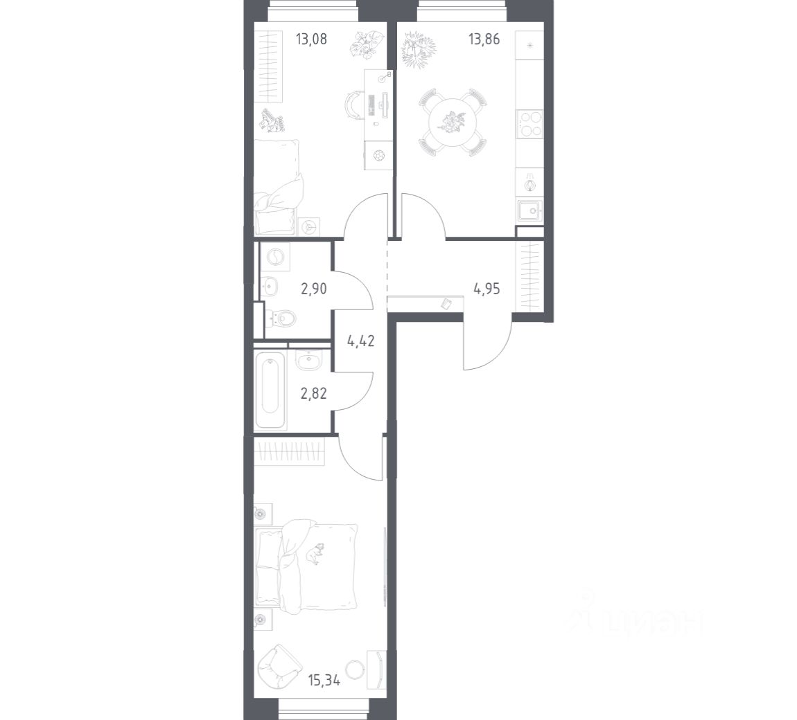 Строим кварталы для жизни с заботой о будущем. Предлагается 2-комнатная квартира комфорт-класса площадью 57,37 кв.м в корпусе 7.2 на 7-м этаже, в жилом комплексе "Прибрежный Парк".
