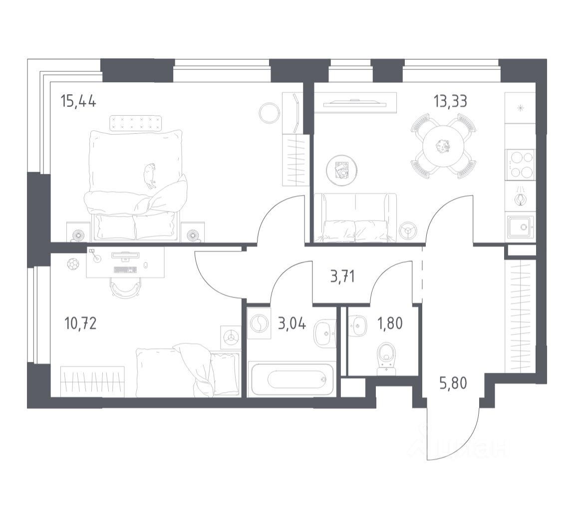 Строим кварталы для жизни с заботой о будущем. Предлагается 2-комнатная квартира комфорт-класса площадью 53,84 кв.м в корпусе 7.2 на 5-м этаже, в жилом комплексе "Прибрежный Парк".
