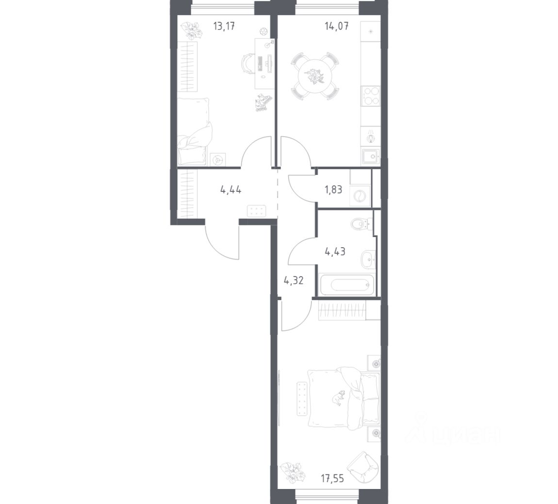 А если не хочется тратить время на ремонт, можно выбрать опцию — с отделкой. Перед тем как отдать ключи, застройщик установит натяжные потолки, поклеит обои под покраску, положит ламинат светлых тонов, а в санузлах — керамическую плитку и керамогранит.