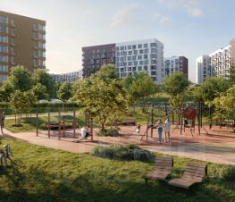 Дворы-парки будут радовать жителей цветением и зеленью: здесь высадят липы, сосны, ели, клены и сирень. Плэйхаб станет местом встреч всех любителей активного отдыха: застройщик оборудует зоны тренажеров и воркаута, площадки для игр в настольный теннис, мяч, шахматы. Также появятся современные игровые площадки для детей.