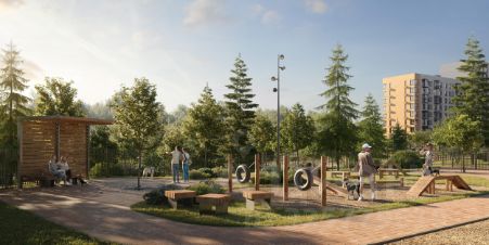 Дворы-парки будут радовать жителей цветением и зеленью: здесь высадят липы, сосны, ели, клены и сирень. Плэйхаб станет местом встреч всех любителей активного отдыха: застройщик оборудует зоны тренажеров и воркаута, площадки для игр в настольный теннис, мяч, шахматы. Также появятся современные игровые площадки для детей.