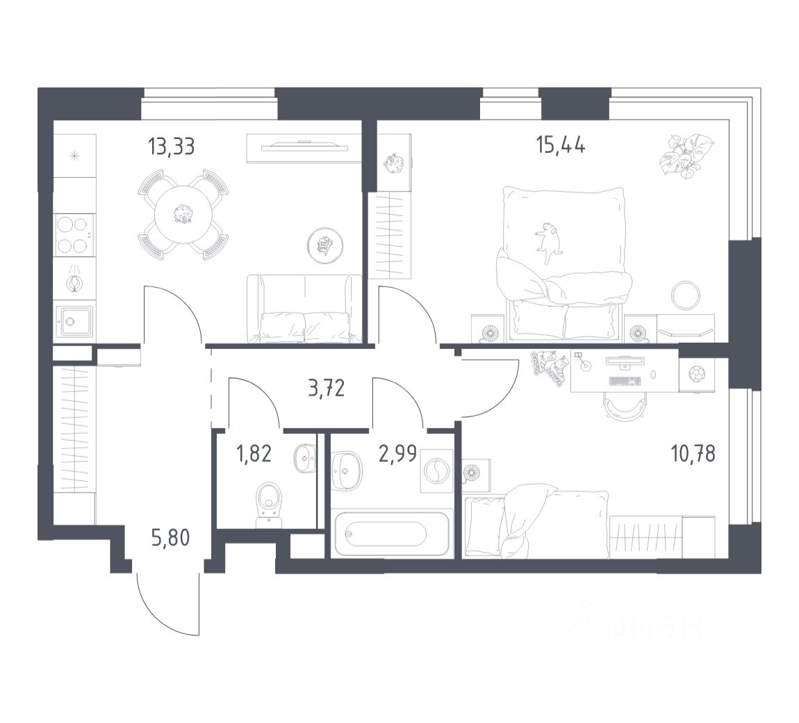 А если не хочется тратить время на ремонт, можно выбрать опцию — с отделкой. Перед тем как отдать ключи, застройщик установит натяжные потолки, поклеит обои под покраску, положит ламинат светлых тонов, а в санузлах — керамическую плитку и керамогранит.