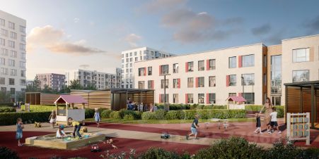 В квартале будут детский сад на 200 мест и учебно-воспитательный комплекс на 1 500 мест, в который войдут школа и детский сад. Первые этажи жилых корпусов займут квартиры, кафе, магазины и салоны красоты.
