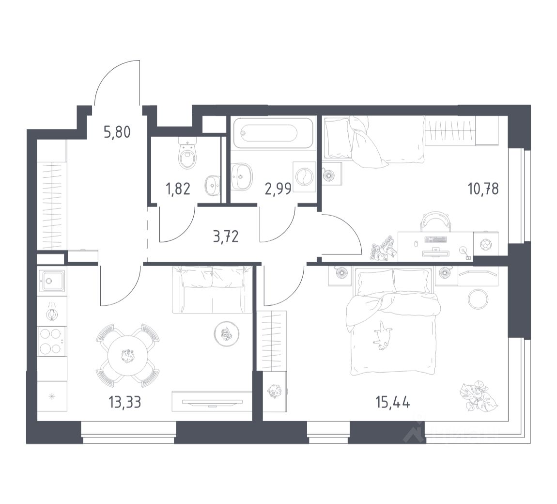 Строим кварталы для жизни с заботой о будущем. Предлагается 2-комнатная квартира комфорт-класса площадью 53,88 кв.м в корпусе 2 на 5-м этаже, в жилом комплексе "Подольские Кварталы".