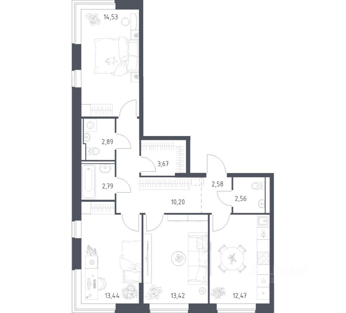 А если не хочется тратить время на ремонт, можно выбрать опцию — с отделкой. Перед тем как отдать ключи, застройщик установит натяжные потолки, поклеит обои под покраску, положит ламинат светлых тонов, а в санузлах — керамическую плитку и керамогранит.