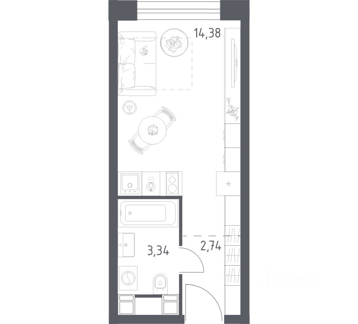 Строим кварталы для жизни с заботой о будущем. Предлагаются студия-апартаменты комфорт-класса площадью 20,46 кв.м в корпусе 1 на 4-м этаже, в жилом комплексе "Пятницкое 58".