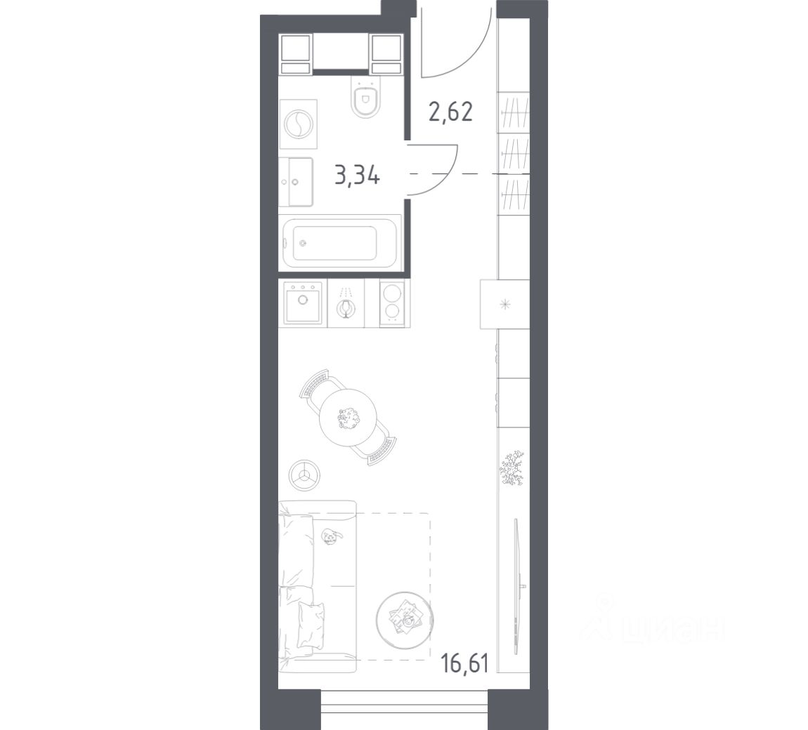 В продаже студия в корпусе 1 ЖК 'Пятницкое 58'. Квартира располагается на 12 этаже, общая площадь 22.57 м2.