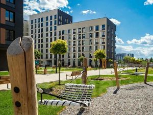 • На территории также есть детский сад и начальная школа, спортивные площадки, футбольное поле, площадка для выгула собак и множество зон для отдыха