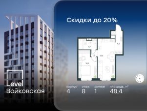 Продается 1-комнатная квартира площадью 48.40 кв. м с отделкой. Квартира находится на 8 этаже 26-этажного корпуса 4, в новом жилом комплексе бизнес-класса Level Войковская, расположенном рядом с живописным заповедником "Покровское-Стрешнево" (застройщик - компания Level Group/Левел групп).