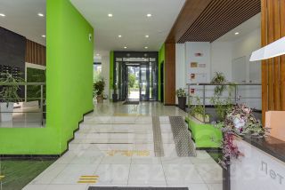 Площадь 61,8 кв.м. указана по ЕГРН без учета лоджии, общая площадь 64,8 кв.м. Окна на две стороны: во двор и на улицу. В подъезде три лифта, консьерж, два выхода - во двор и на улицу. Колясочная.