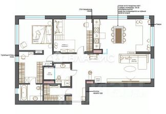 Продуманная планировка для жизни:Сердце дома: просторная кухня-гостиная с видом на лес, островом из камня и техникой Bosch. Готовое медиапространство с экраном 85".