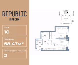 Продается 2комнатная квартира на 10 этаже от застройщика Страна Девелопмент. Площадь квартиры 58,47 кв. м.