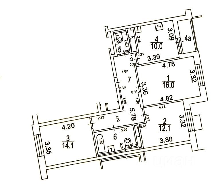 Квартира расположена на 14 этаже 21 этажного дома, на лестничной площадке 4 квартиры