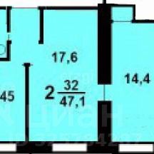 Квартира имеет общую площадь 47,1 м² и состоит из двух комнат.