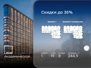 В Академическом районе продаётся многокомнатная квартира площадью 244.90 кв.м без отделки. Квартира расположена на 19-м этаже 19-этажного жилого комплекса бизнес-класса Level Академическая (компания Level Group).
