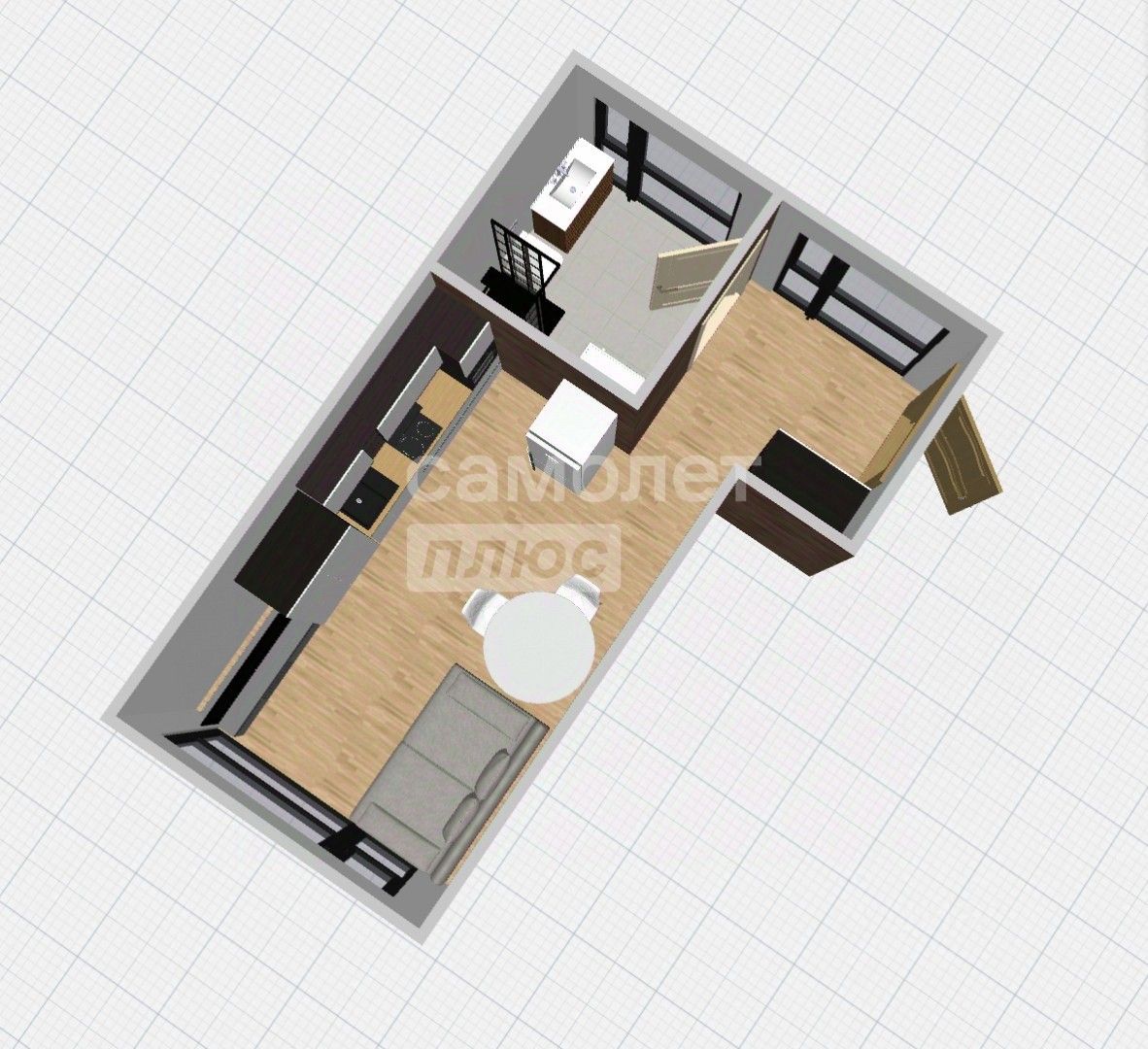 Редкий формат студии с окнами в санузле и прихожей