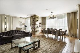 В квартире два независимых входа — для хозяев и для персонала, что обеспечивает высокий уровень комфорта и приватности. Выполнена отделка в стиле современной классики с использованием премиальных материалов и мебели брендов Baker, Ralph Lauren, J Robert Scott. Улучшенная шумоизоляция, потолки — 3 м. Возможна покупка машино-места и кладовой в подземном паркинге.