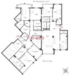 Лот: 78909. Эксклюзив NF GROUP. В продаже эксклюзивная 6-комнатная квартира площадью 492 м² в клубном доме Lake House в Раменках. Пространство спроектировано для комфортной жизни большой семьи: гостиная-столовая, кухня с кладовой, мастер-спальня с кабинетом, ванной и гардеробной, 3 детских (гостевых) спальни со своими санузлами и гардеробными, детская гостиная, кинозал, винно-сигарная комната, постирочная, спальня для няни.