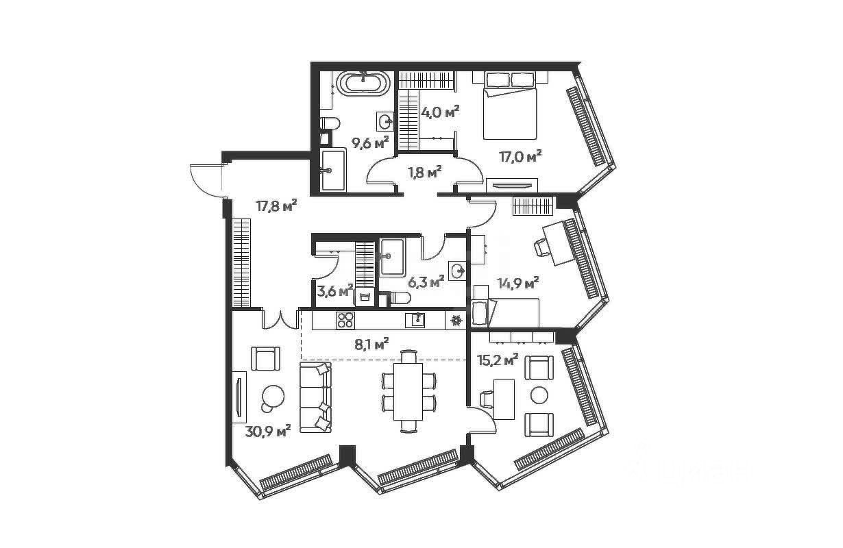- общая площадь 129.2 м²